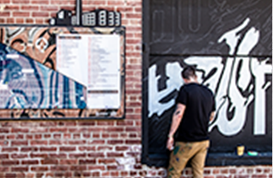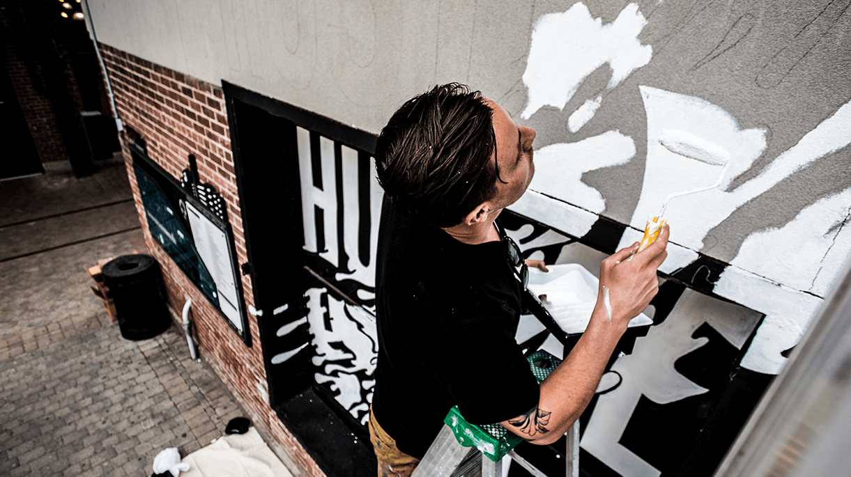 Ben Johnston was challenged to create a strong statement for the neighbourhood that would capture its urban vibrancy, industrial history, entrepreneurial culture, and the resounding sense of pride within the community. “We wanted the verbiage and aesthetic for each mural to stand the test of time and pay homage to the Liberty Village community and the people who live, work and play here,” says Ben. “We created these murals in a way that is intended to bring the words and sentiment to fruition in the most captivating way possible… and at the end of the day every mural has its own original way of coming to life.” Both murals reflect Ben’s bold, typographic, and vintage-inspired flare.